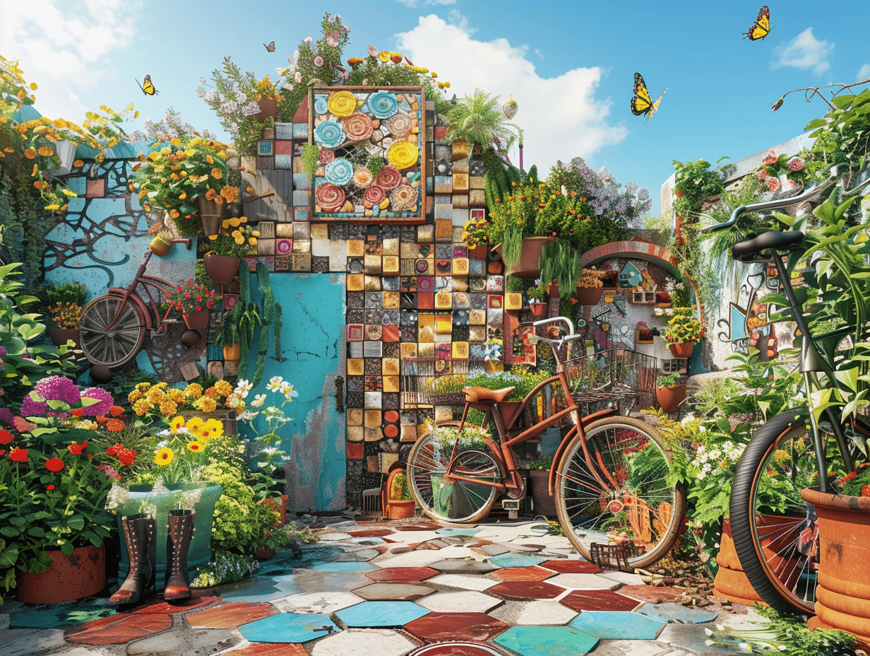 Astuces déco jardin écolo : transformer objets récup en art extérieur